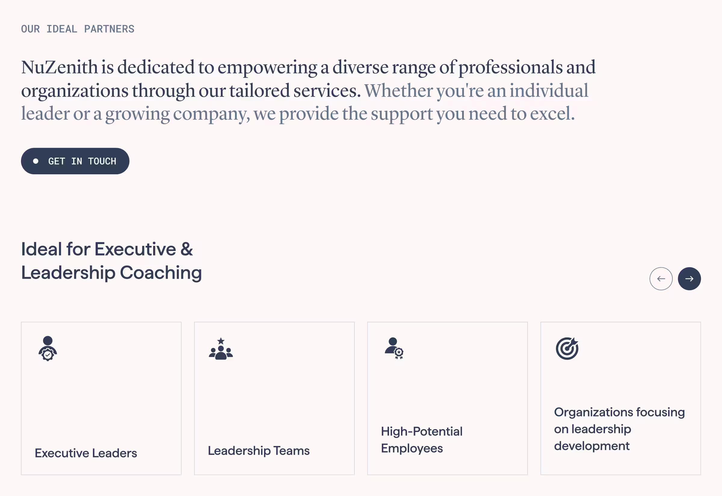 As a leadership coaching and consulting organization helping executives and companies navigate change, performance, and growth, NuZenith needed to resonate with a more senior, discerning audience. The existing brand and website lacked the perceived value and clarity required to attract the right leaders and organizations.
